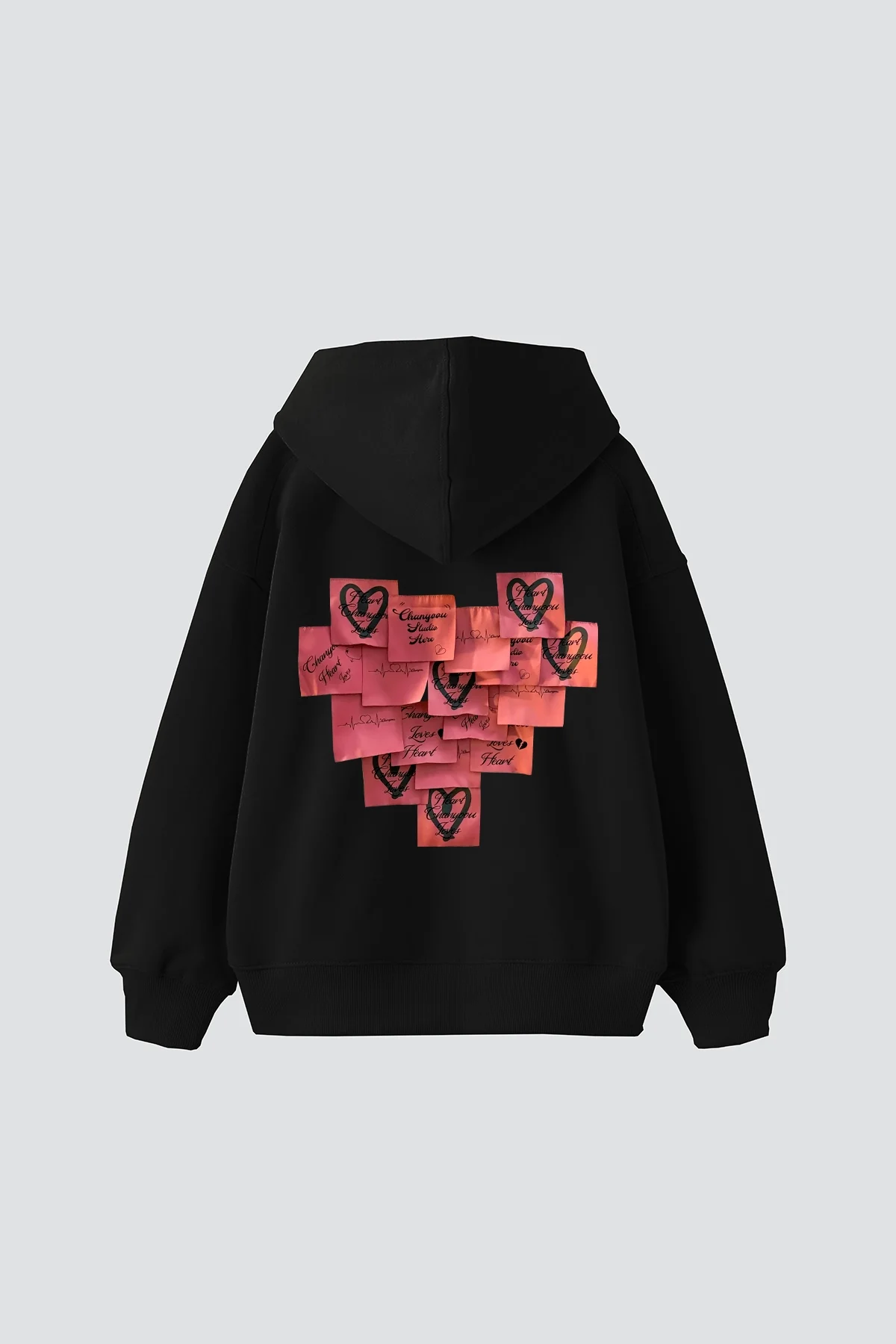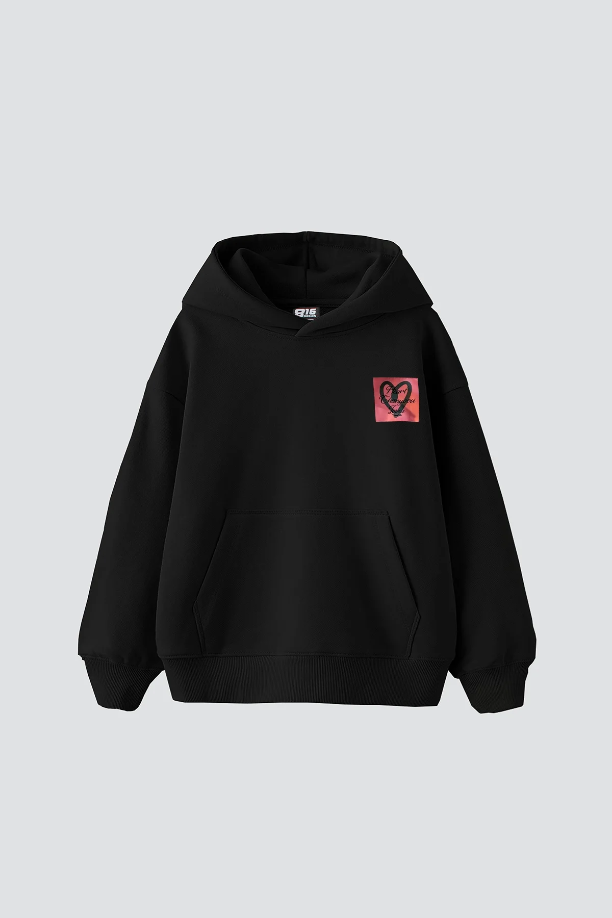 LOVE BASKILI OVERSİZE UNİSEX SİYAH HOODİE