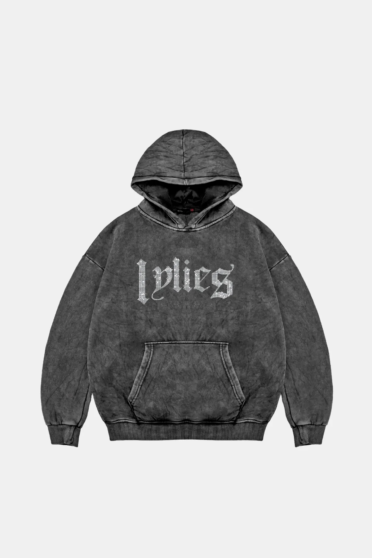 LYLİES TAŞ BASKILI OVERSİZE UNİSEX YIKAMALI SİYAH HOODİE
