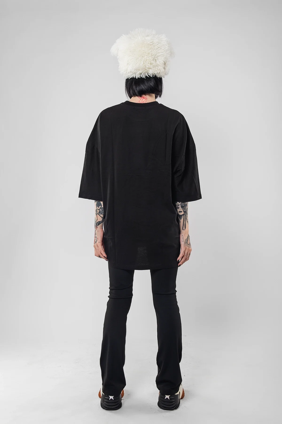 Crimson Reverie Baskılı Oversize Unisex Siyah Tshirt