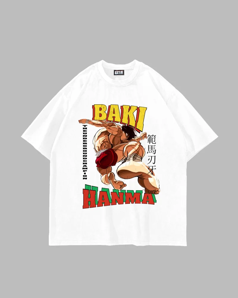 Baki Hanma Baskılı Oversize Unisex Beyaz Tshirt