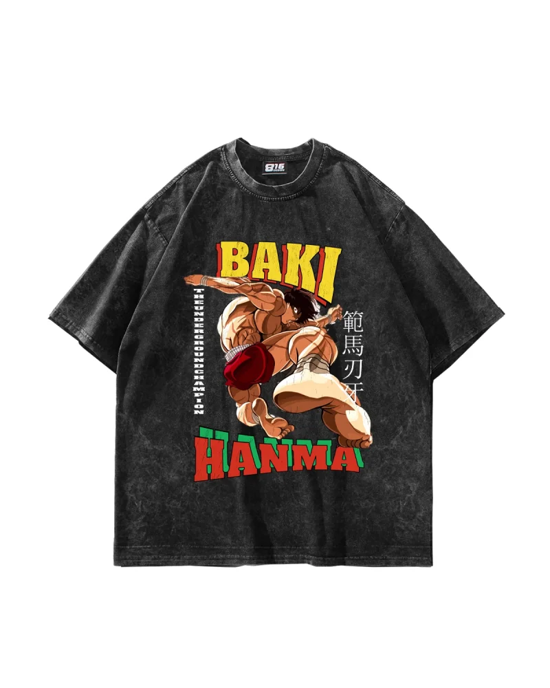 Baki Hanma Baskılı Oversize Unisex Yıkamalı Siyah Tshirt