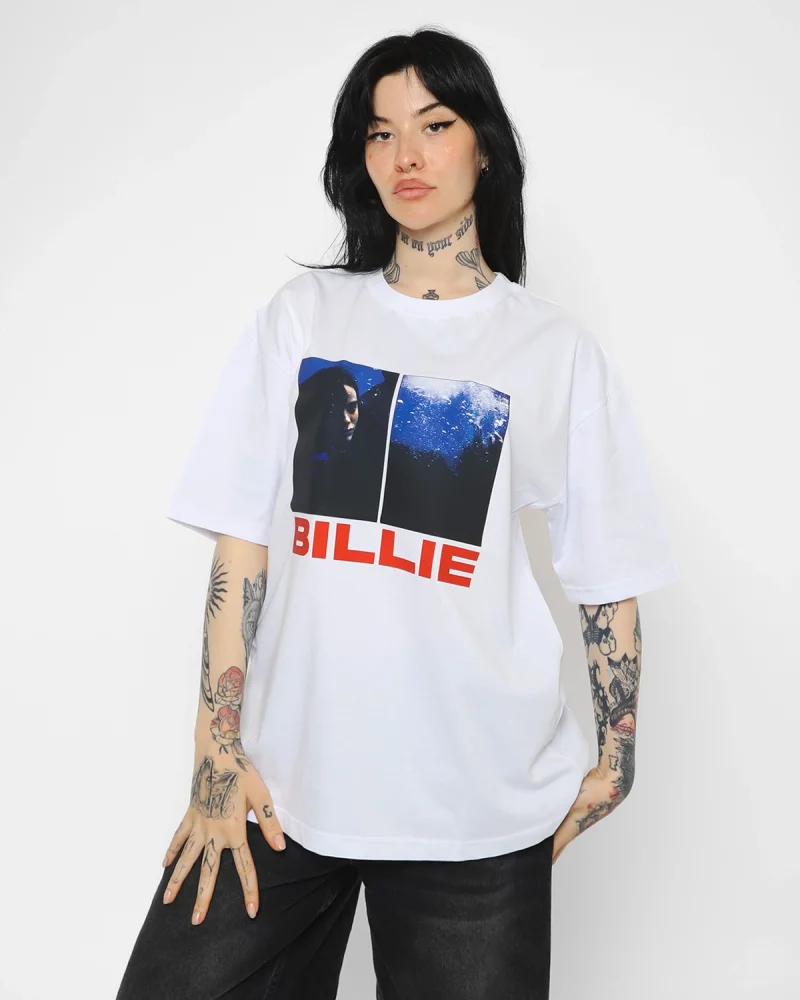 Billie Eilish Baskılı Oversize Unisex Beyaz Tshirt