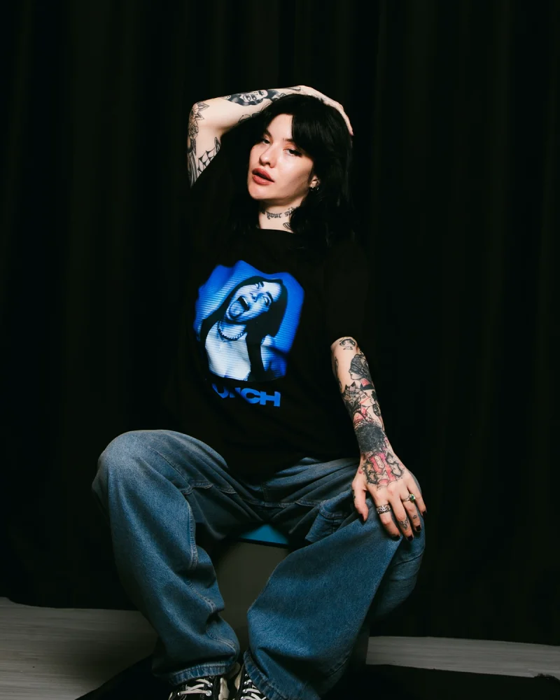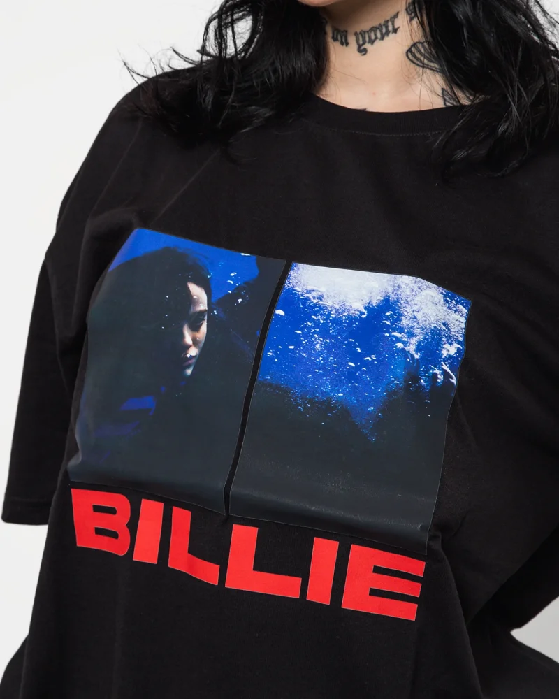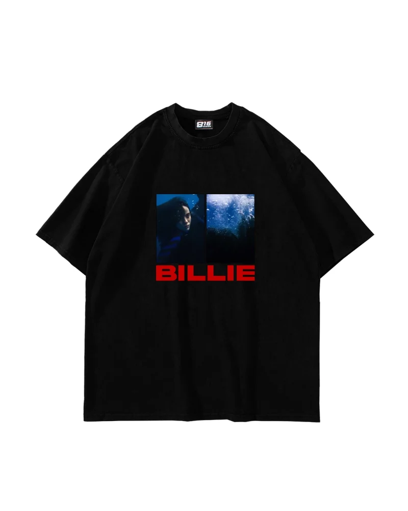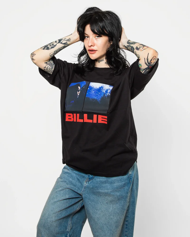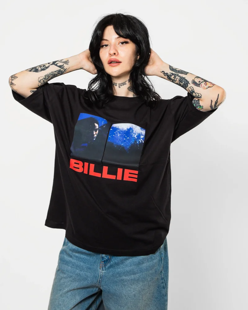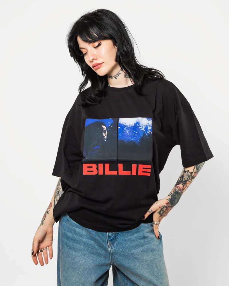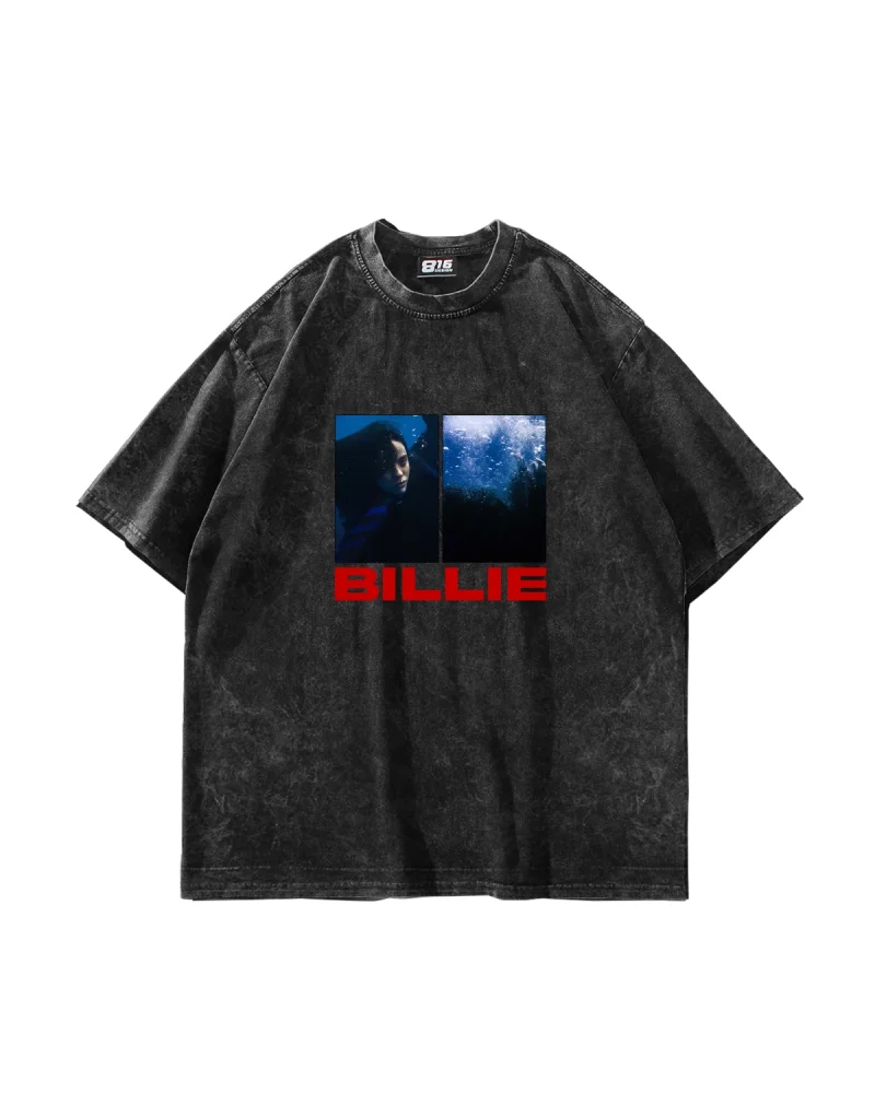 Billie Eilish Baskılı Oversize Unisex Yıkamalı Siyah Tshirt