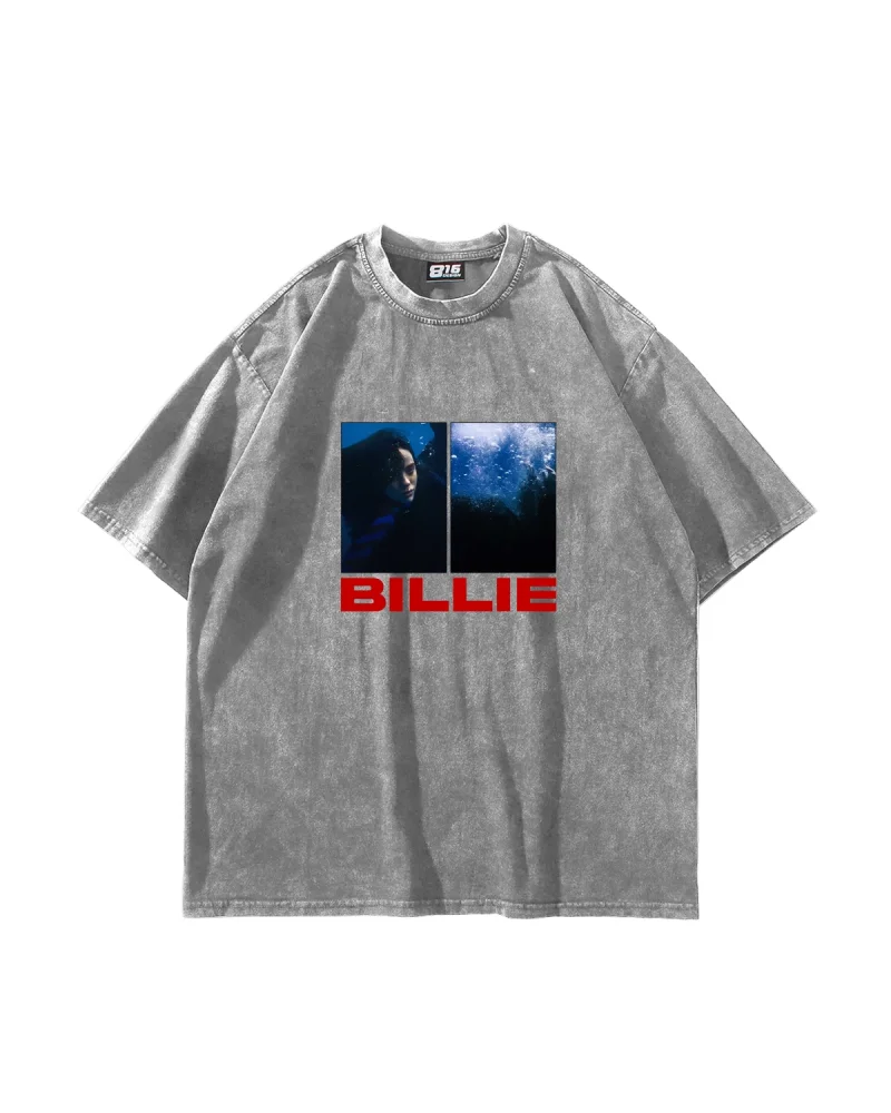 Billie Eilish Baskılı Oversize Unisex Yıkamalı Beyaz Tshirt