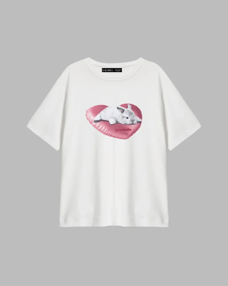 Bunny Baskılı Relaxed Fit Beyaz Kadın Tshirt