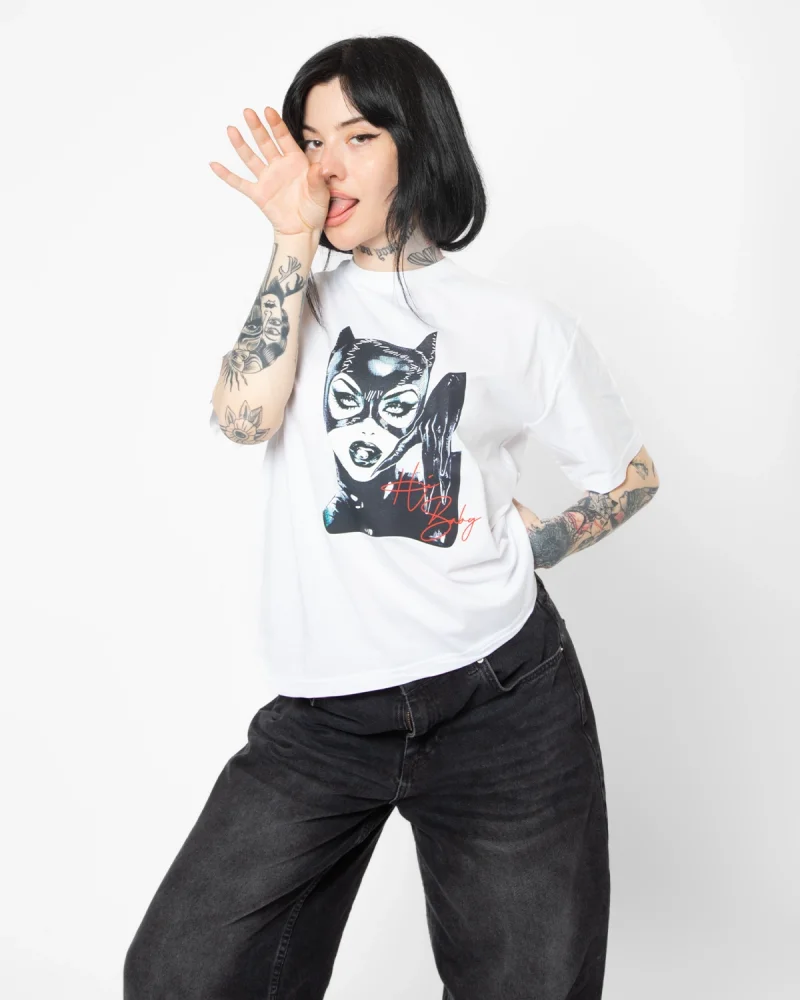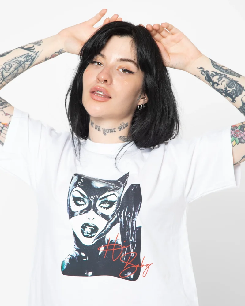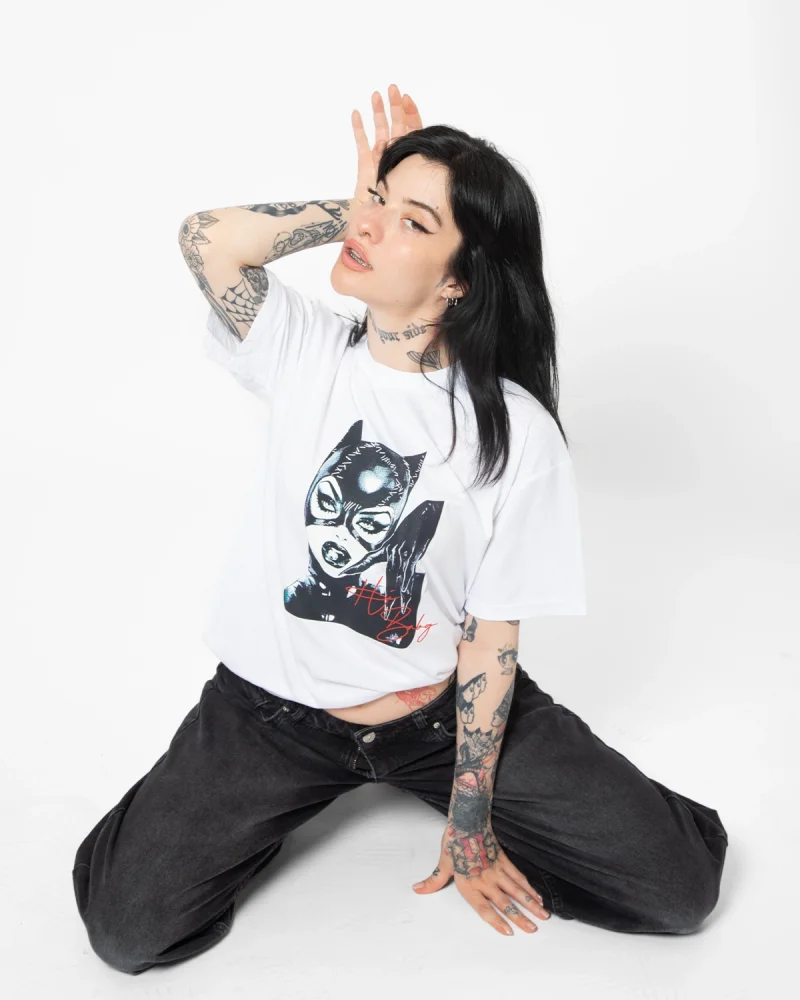 Cat Woman Baskılı Oversize Unisex Beyaz Tshirt
