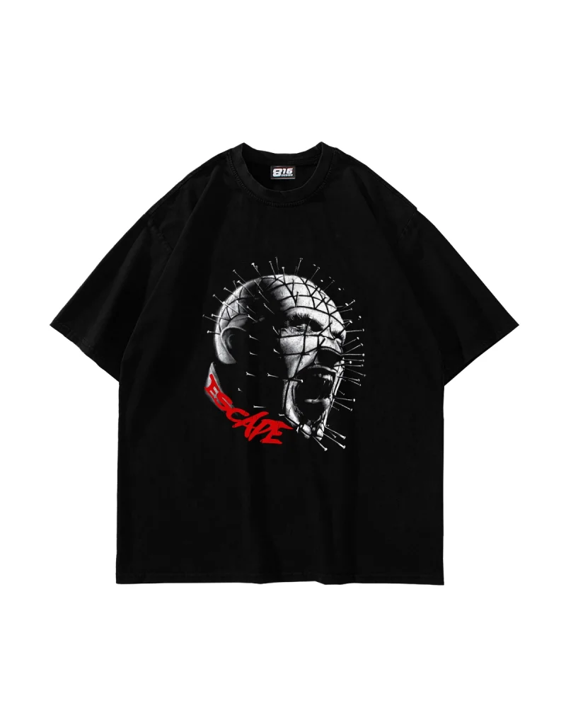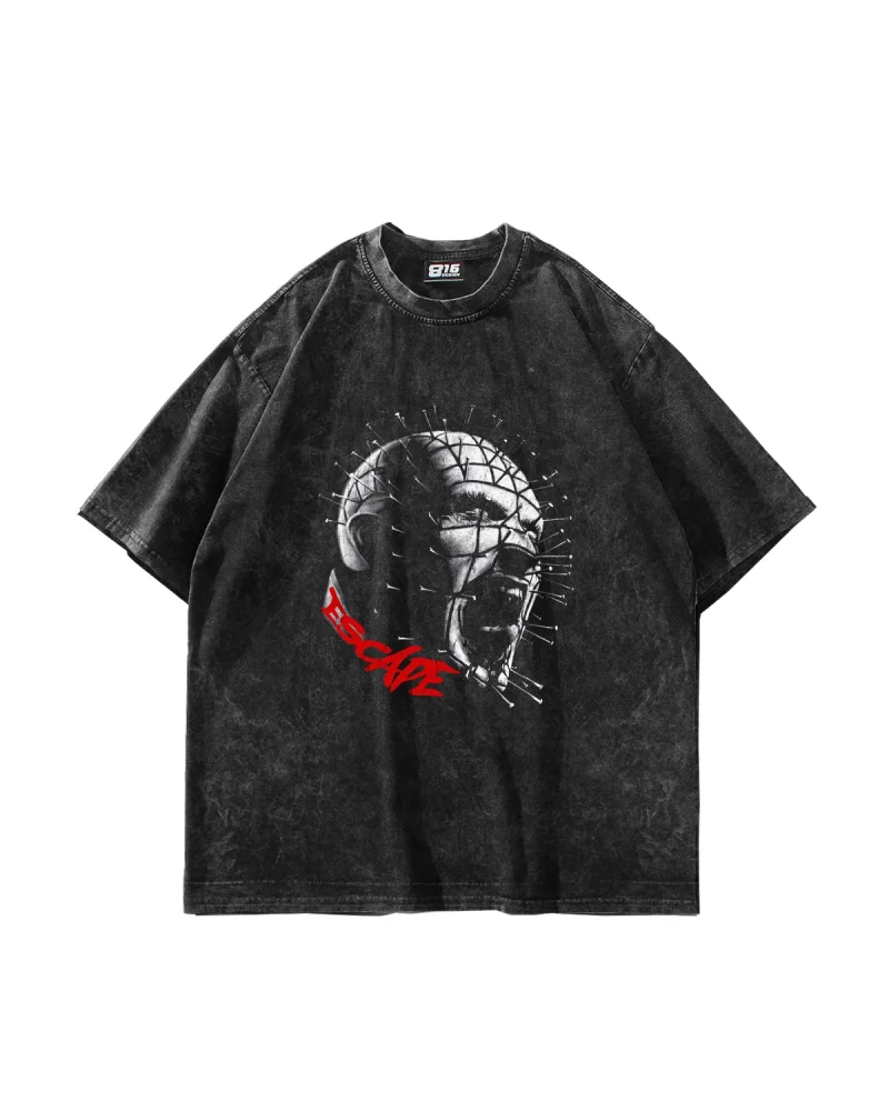 Escape Baskılı Oversize Unisex Yıkamalı Siyah Tshirt