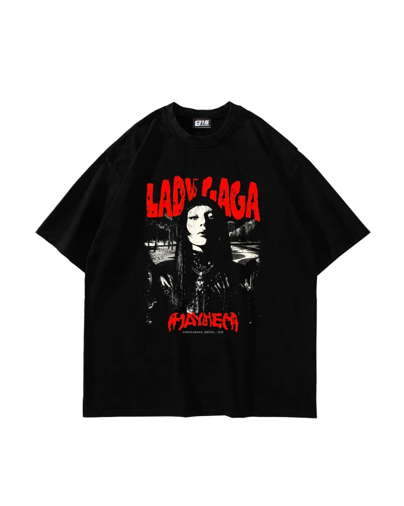 Lady Gaga Baskılı Oversize Unisex Siyah Tshirt