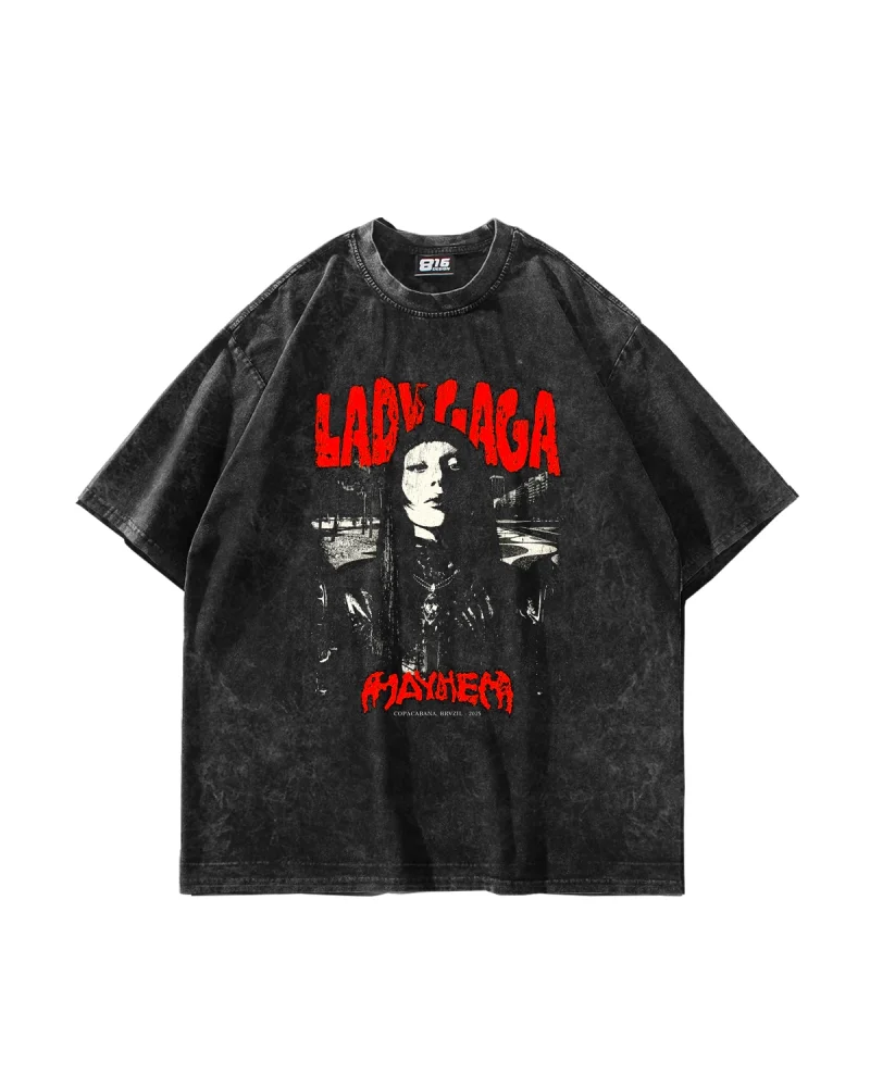 Lady Gaga Baskılı Oversize Unisex Yıkamalı Siyah Tshirt