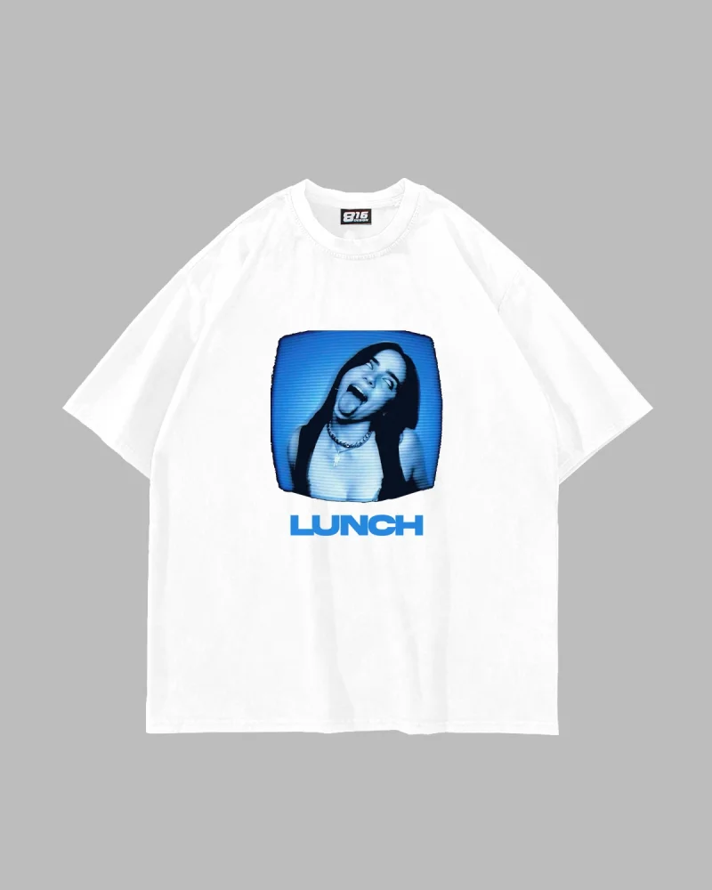Lunch Baskılı Oversize Unisex Beyaz Tshirt