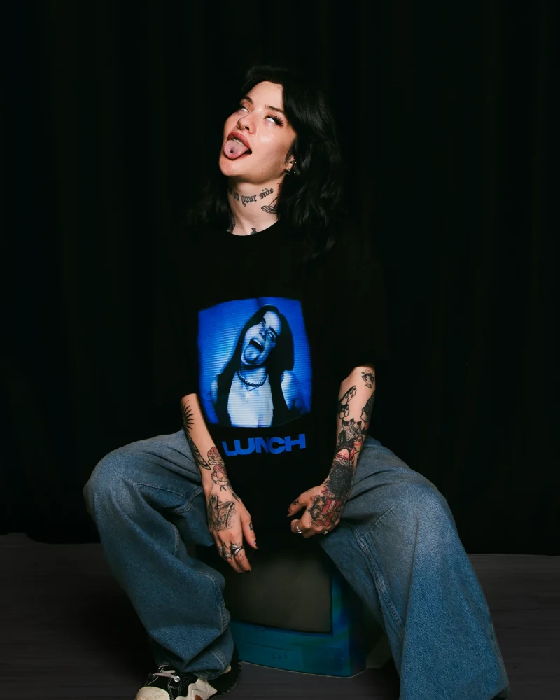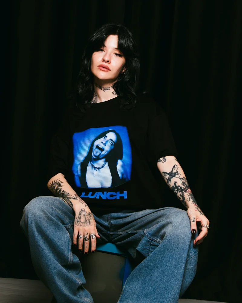 Lunch Baskılı Oversize Unisex Siyah Tshirt