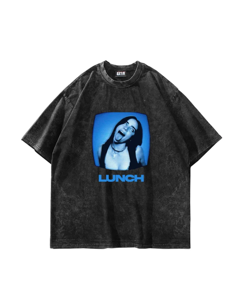Lunch Baskılı Oversize Unisex Yıkamalı Siyah Tshirt