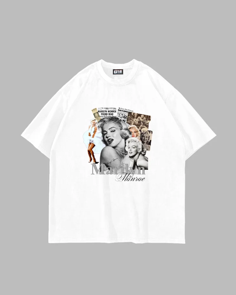 Marilyn Monroe Baskılı Oversize Unisex Beyaz Tshirt