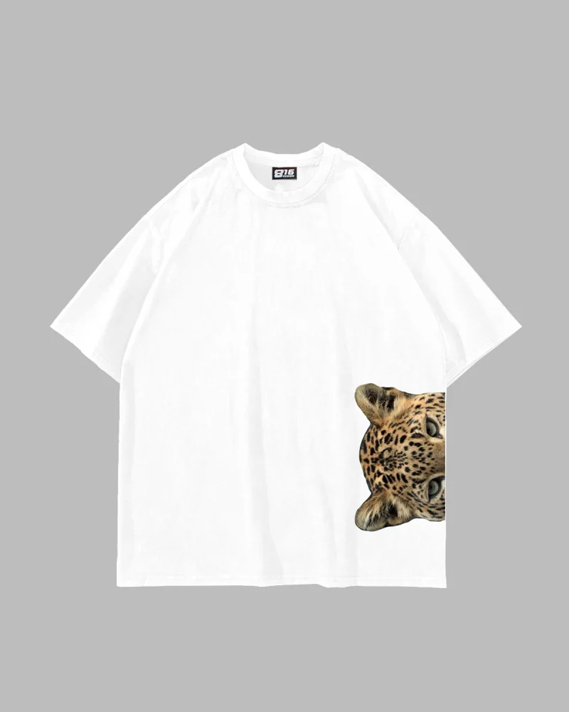Jaguar Baskılı Oversize Unisex Beyaz Tshirt
