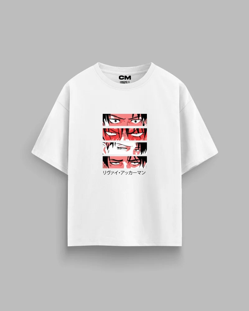 Levi Ackerman Baskılı Rahat Kalıp 30/1 Unisex Beyaz Tshirt