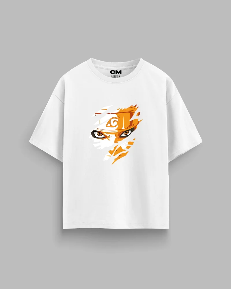 Naruto Ouzumaki Baskılı Rahat Kalıp 30/1 Unisex Beyaz Tshirt