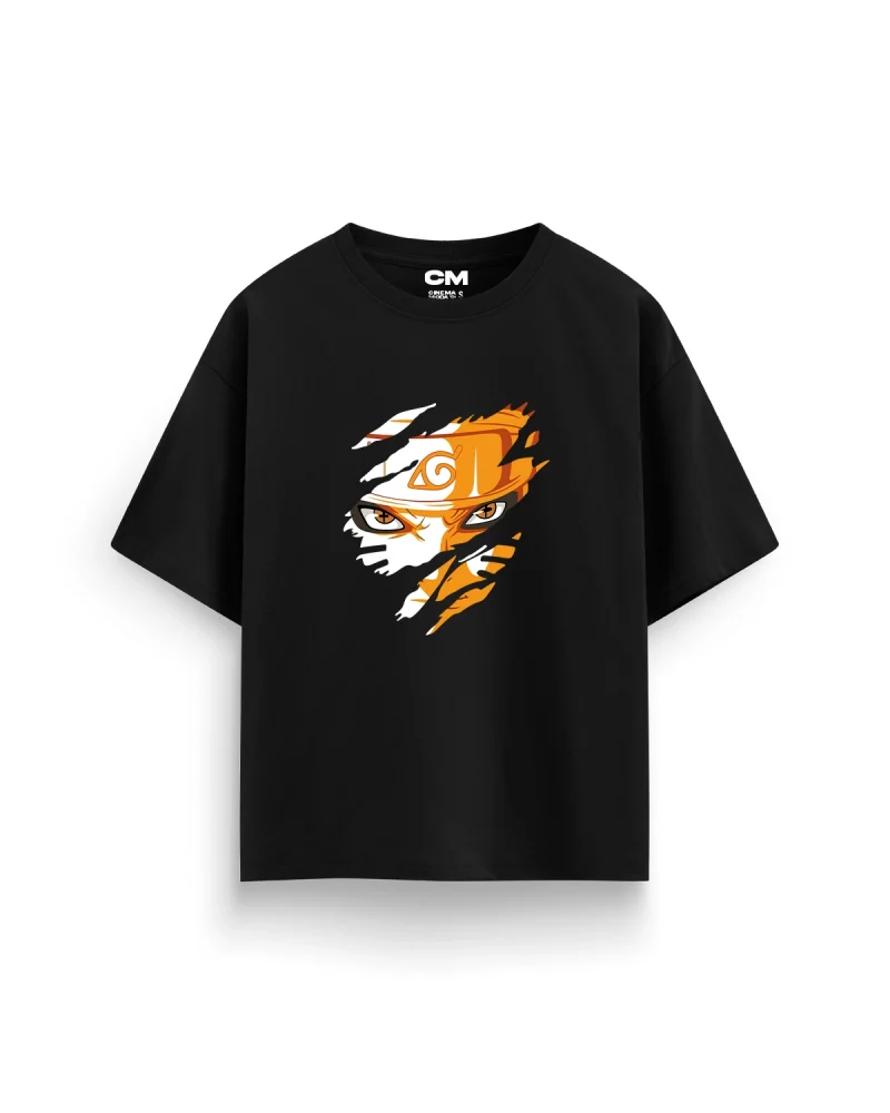 Naruto Ouzumaki Baskılı Rahat Kalıp 30/1 Unisex Siyah Tshirt