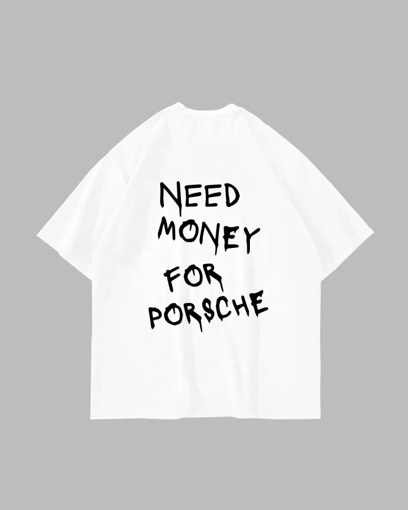Need Money For Porsche Baskılı Oversize Unisex Beyaz Tshirt