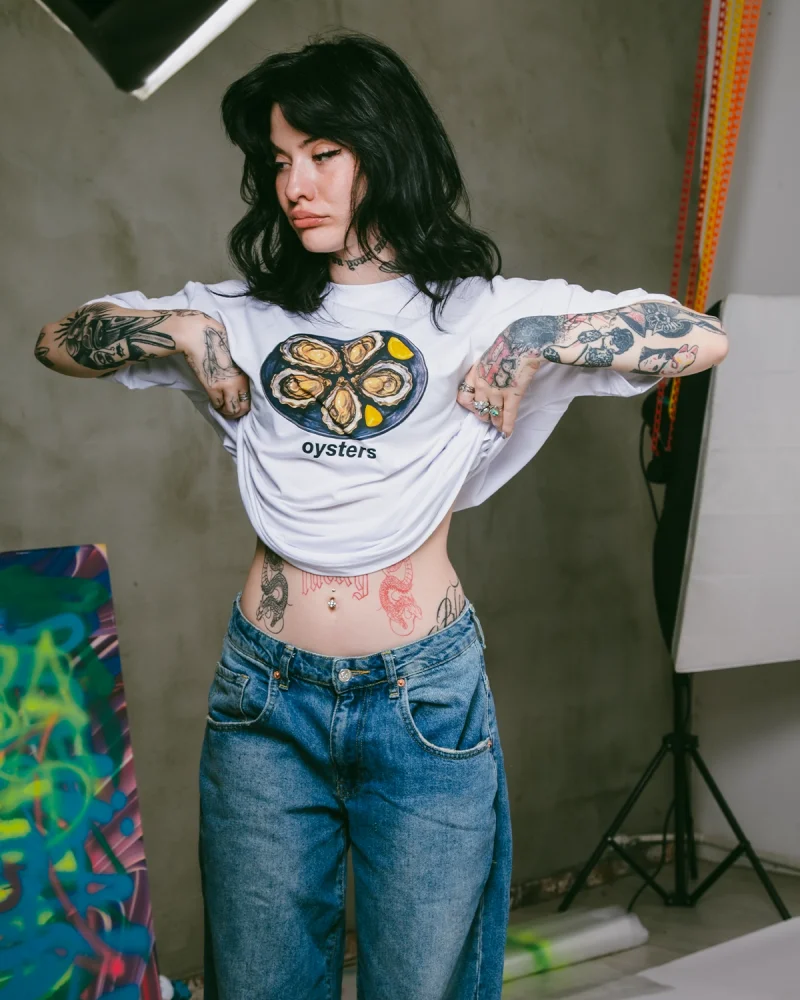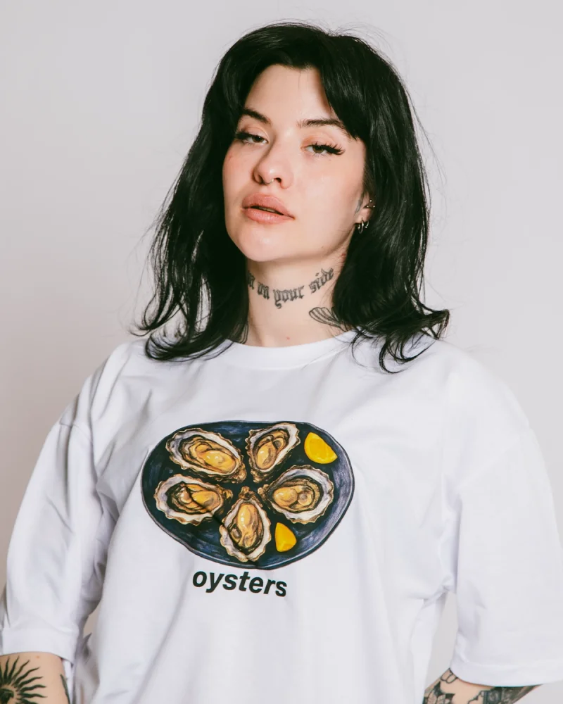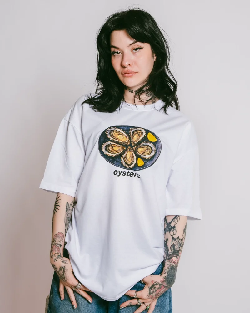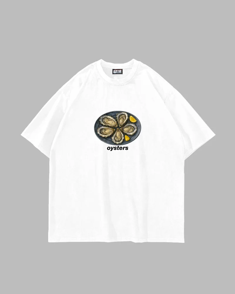 Oysters Baskılı Oversize Unisex Beyaz Tshirt