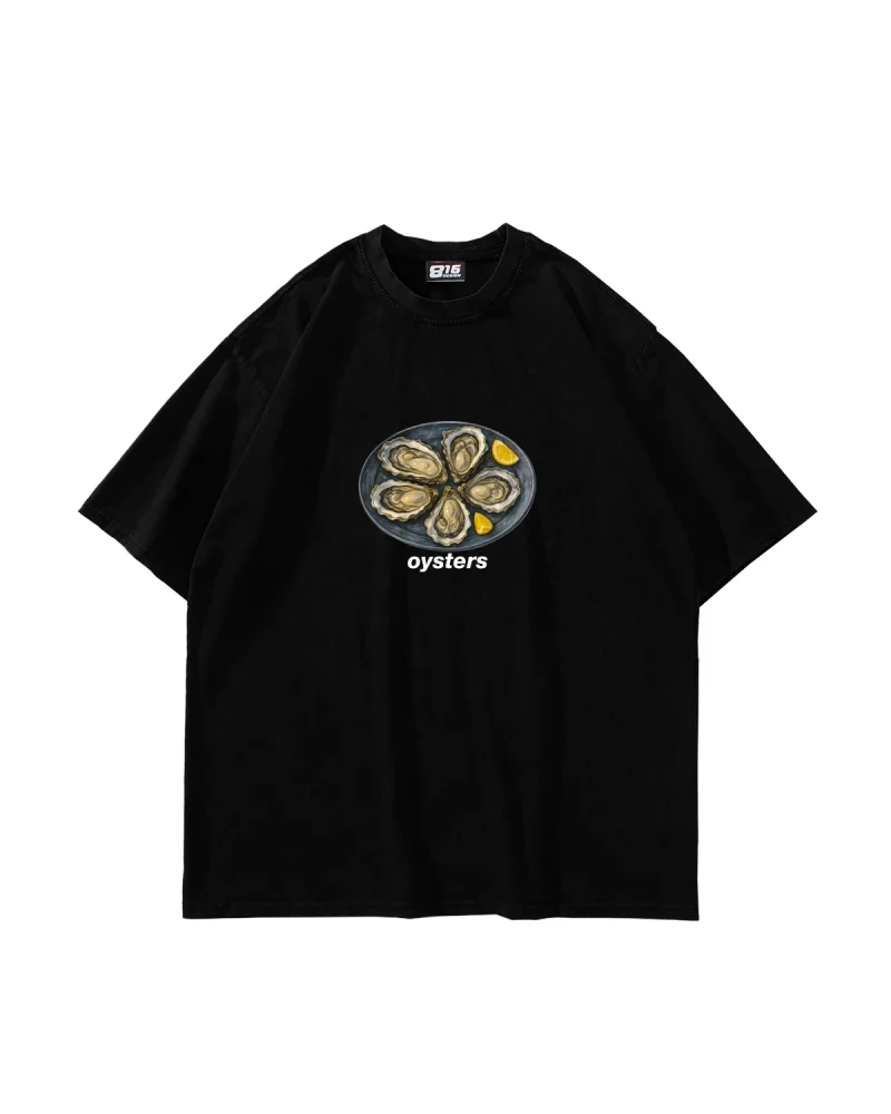 Oysters Baskılı Oversize Unisex Siyah Tshirt