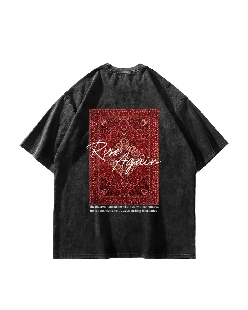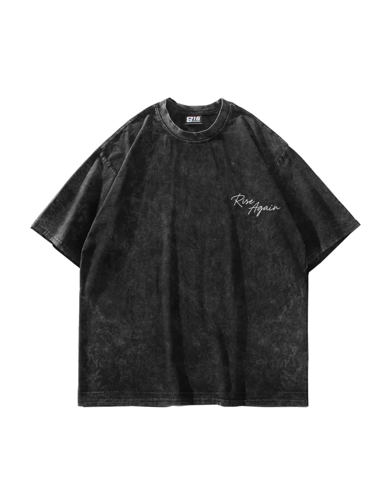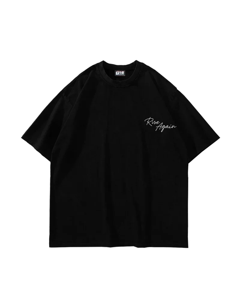 Rise Again Baskılı Oversize Unisex Yıkamalı Siyah Tshirt