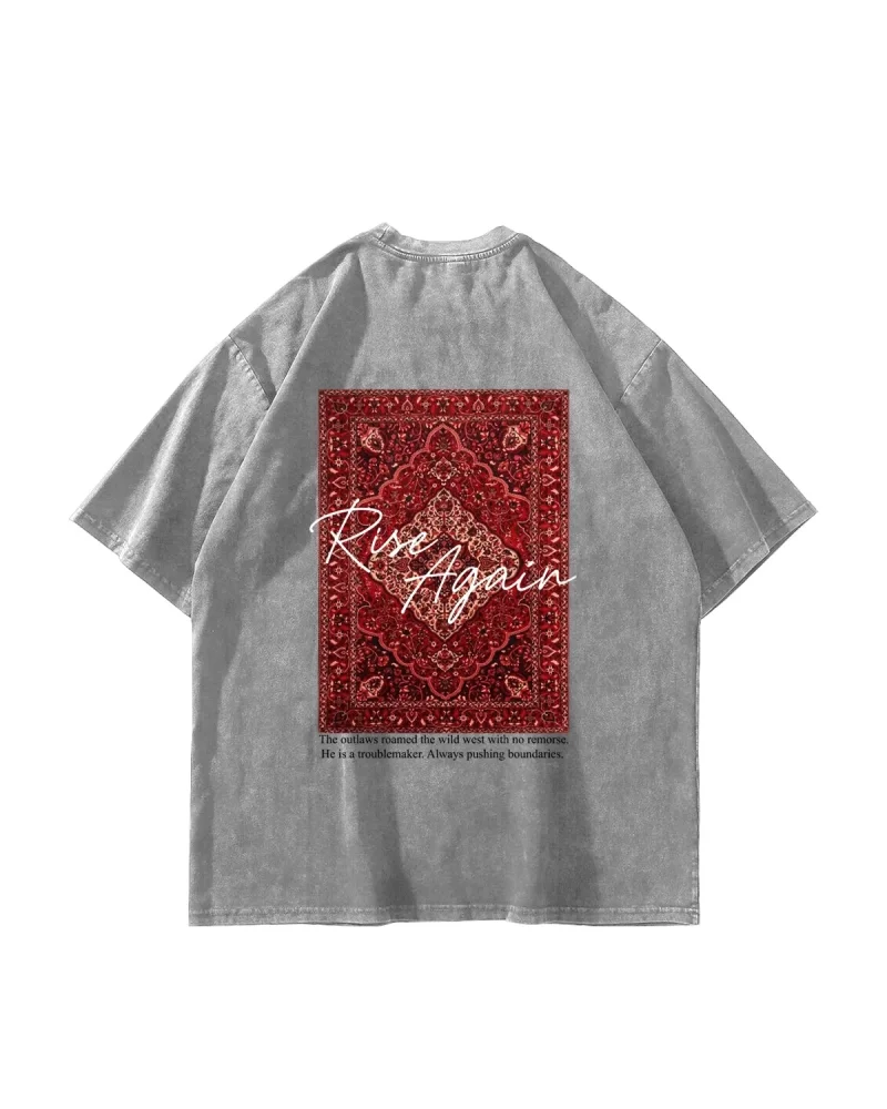 Rise Again Baskılı Oversize Unisex Yıkamalı Beyaz Tshirt