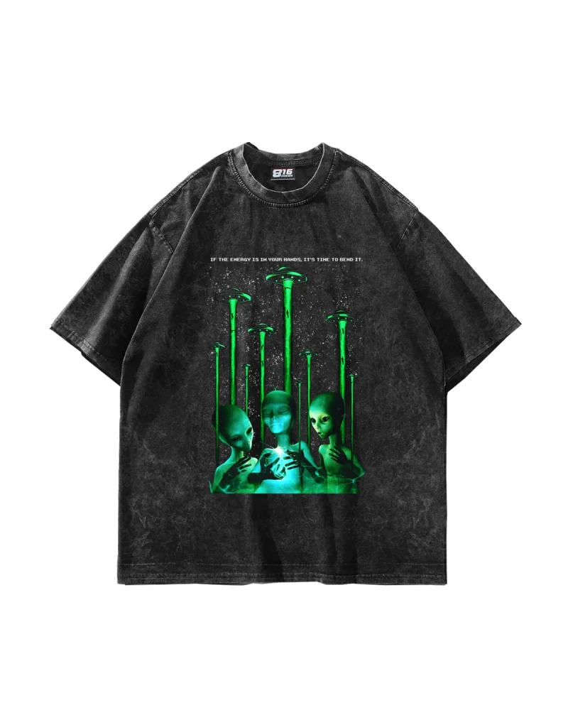 Time To Bend It Baskılı Oversize Unisex Yıkamalı Siyah Tshirt