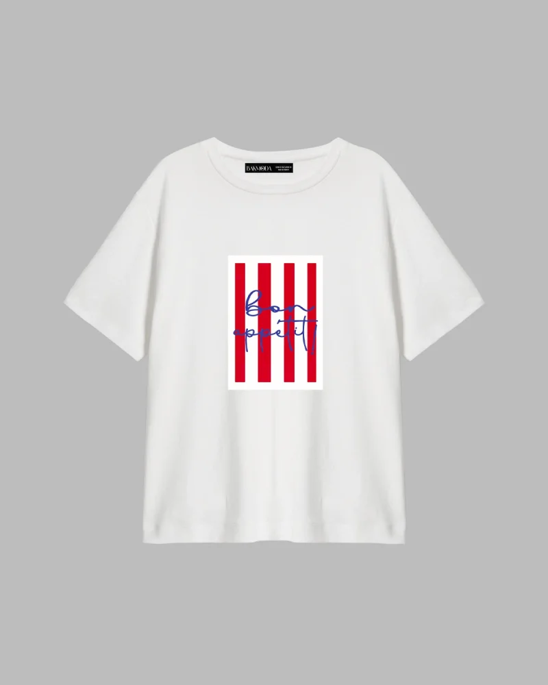 Bon Appetit Baskılı Relaxed Fit Beyaz Kadın Tshirt