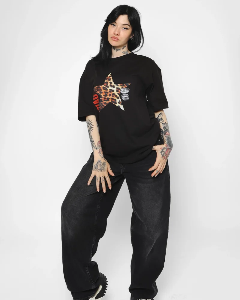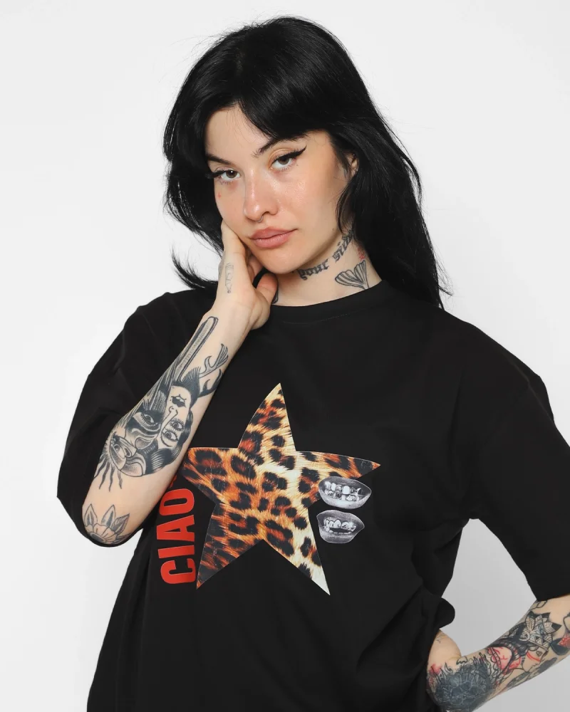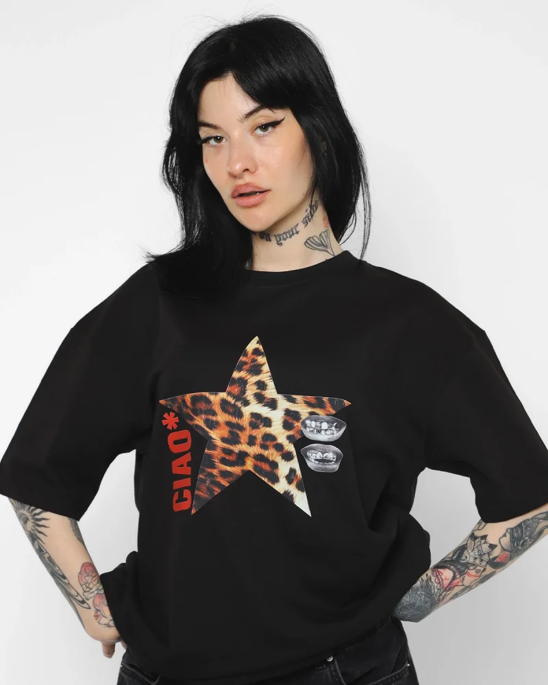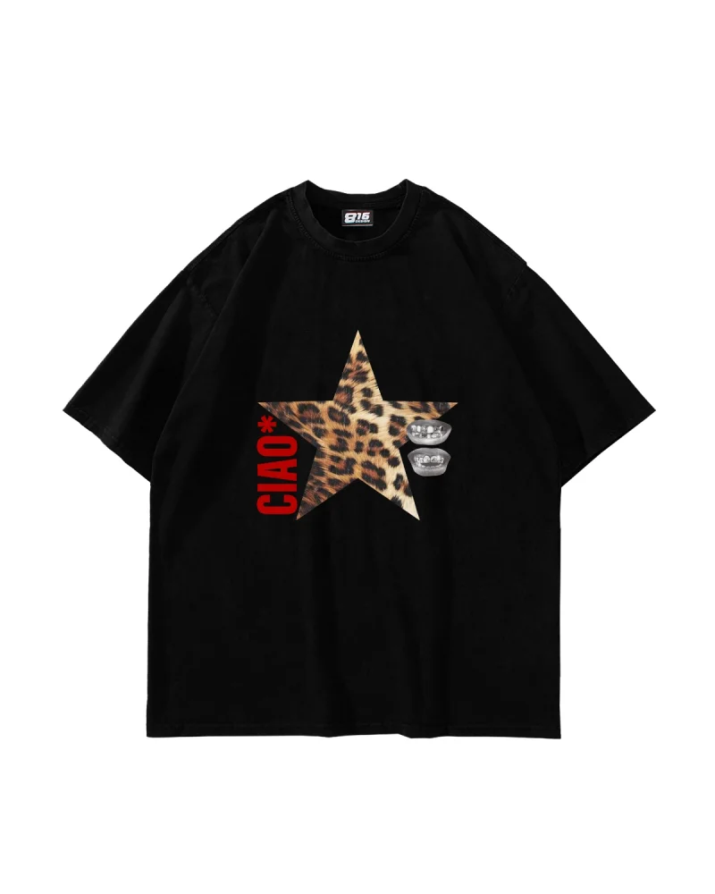 Ciao Yıldız Baskılı Oversize Unisex Siyah Tshirt