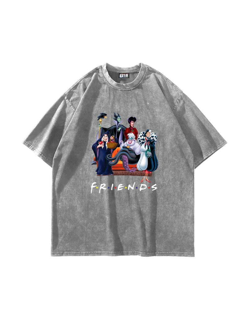 Friends Baskılı Oversize Unisex Yıkamalı Siyah Tshirt