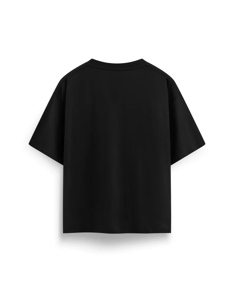 Wınged Crown Baskılı Oversize Unisex Siyah Tshirt