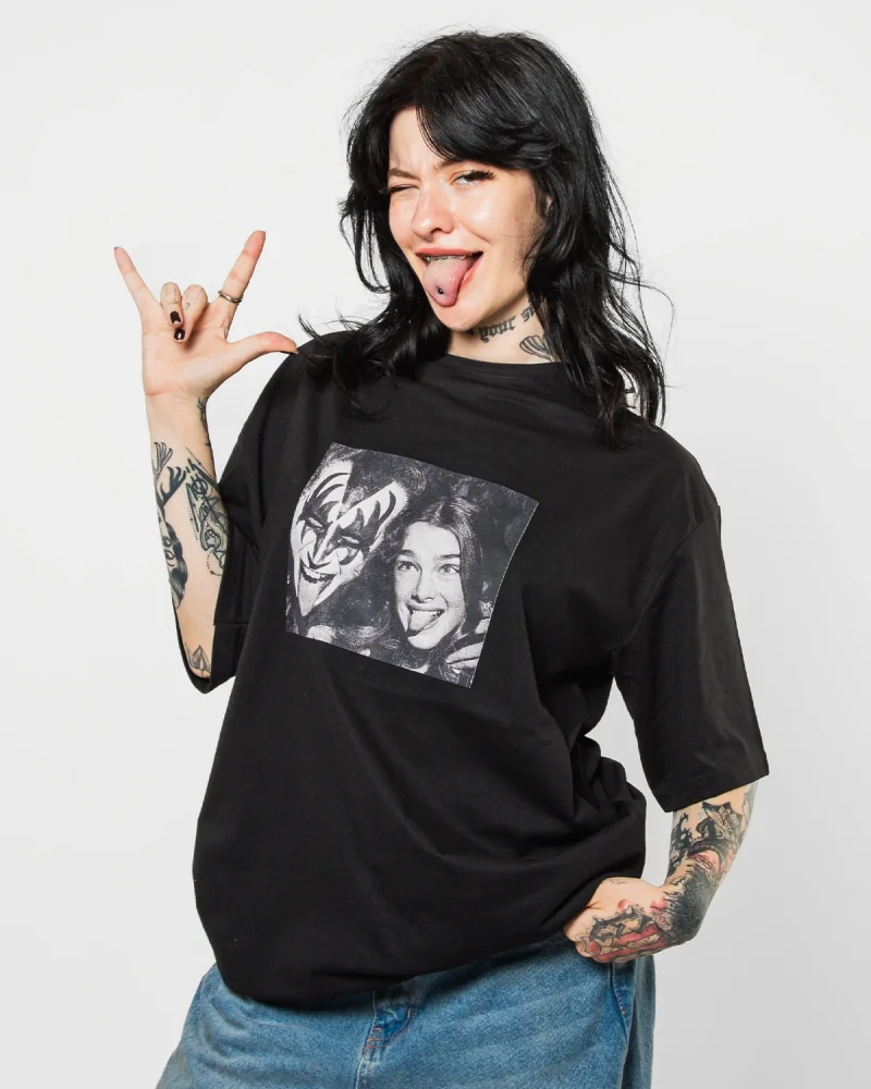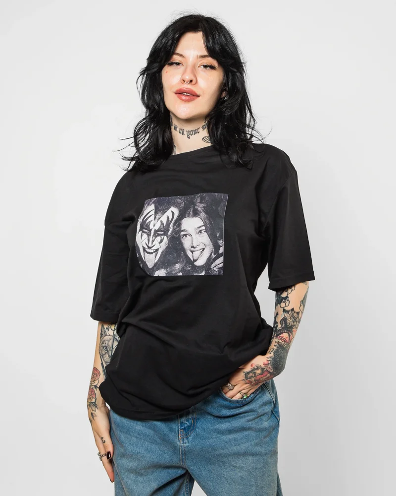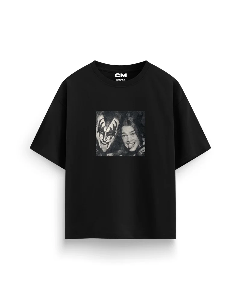 Kiss Baskılı Rahat Kalıp 30/1 Unisex Siyah Tshirt
