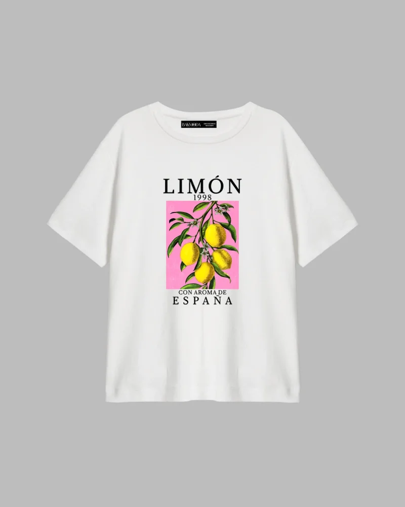 Lemon Baskılı Relaxed Fit Beyaz Kadın Tshirt