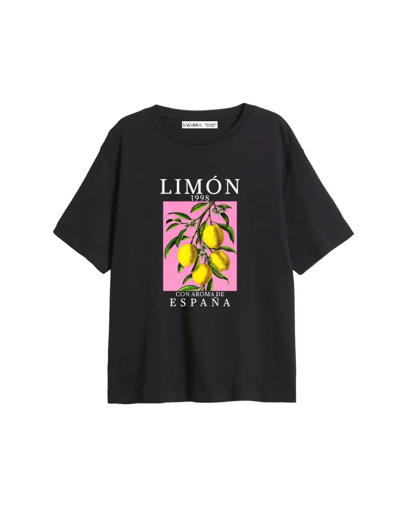 Lemon Baskılı Relaxed Fit Siyah Kadın Tshirt
