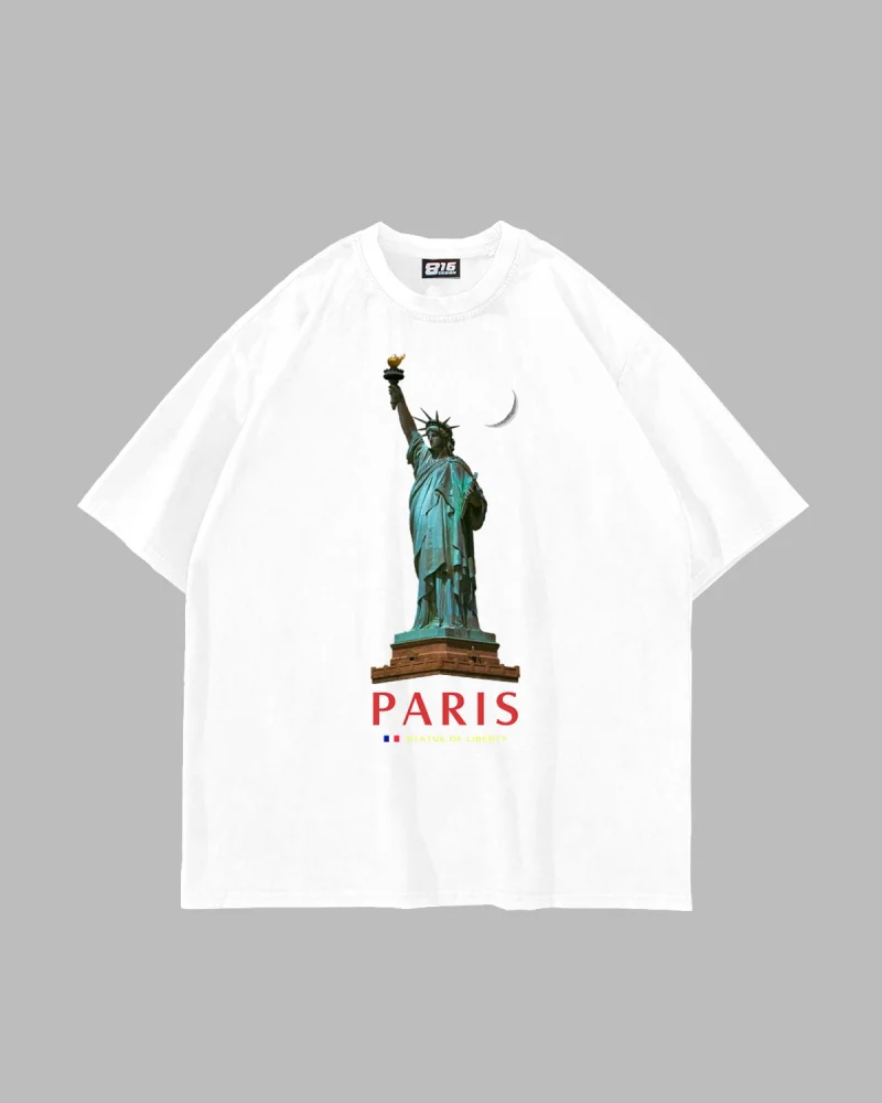 Parıs State Of Lıberty Baskılı Oversize Unisex Beyaz Tshirt
