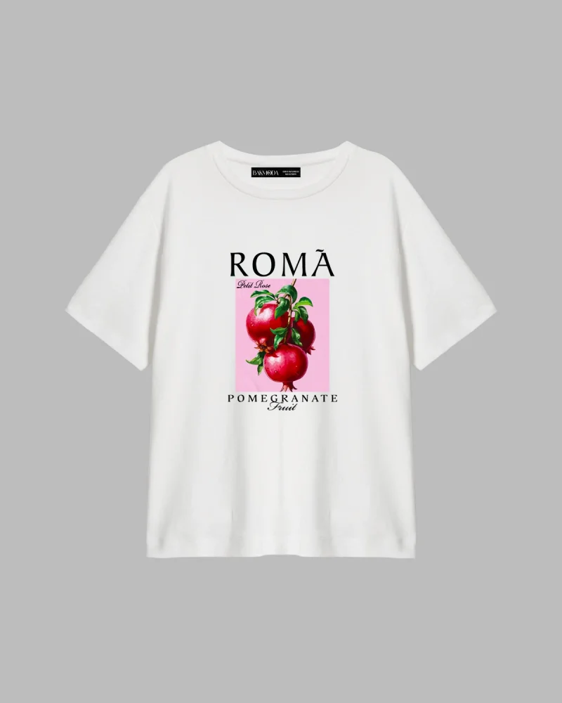 Pomegranate Baskılı Relaxed Fit Beyaz Kadın Tshirt