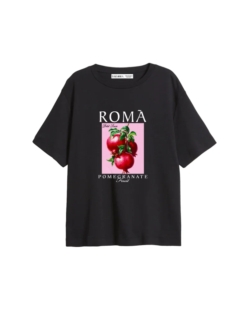 Pomegranate Baskılı Relaxed Fit Siyah Kadın Tshirt