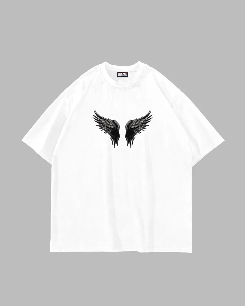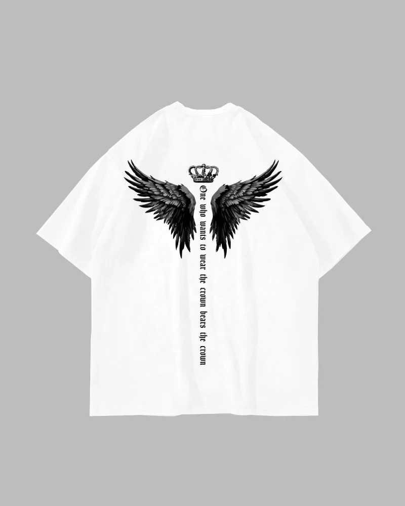 Wınged Crown Baskılı Oversize Unisex Beyaz Tshirt