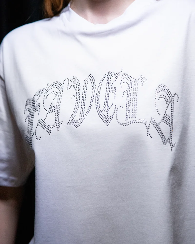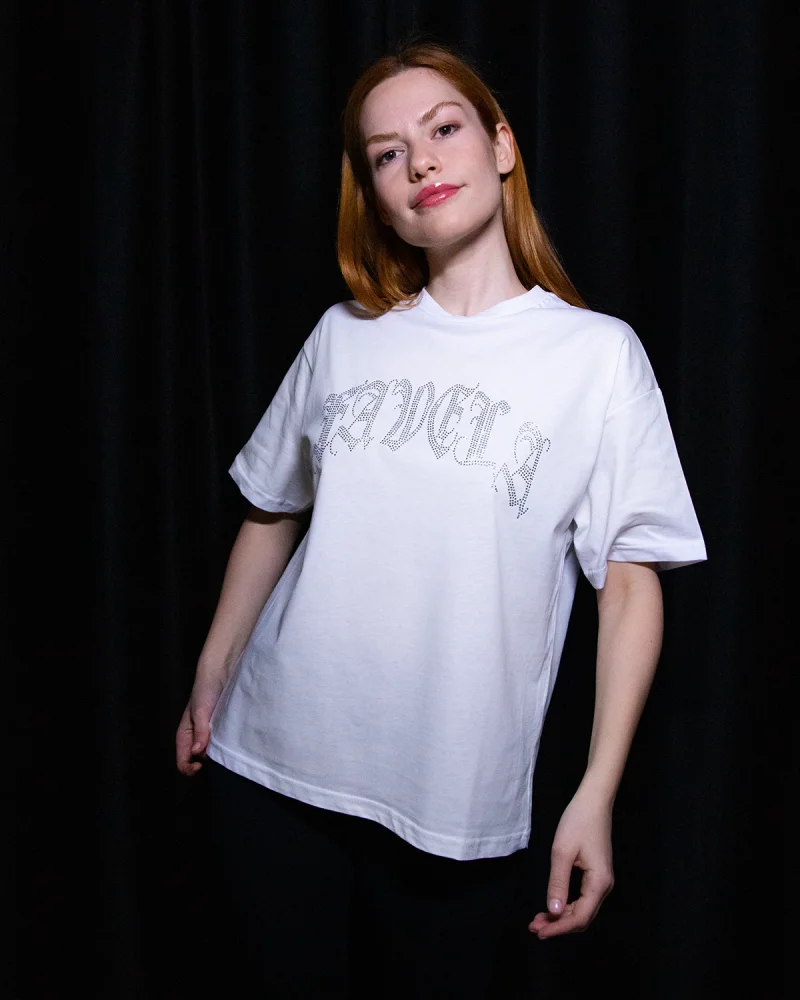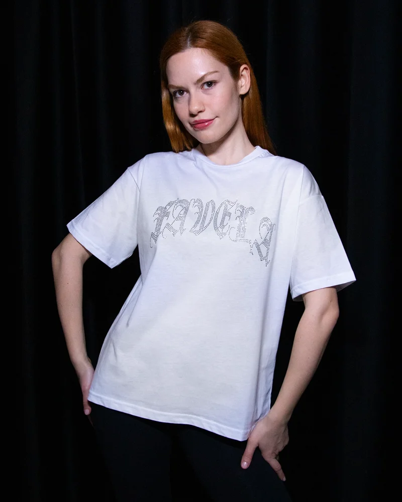 Favela Taş Baskılı Relaxed Fit Beyaz Kadın Tshirt