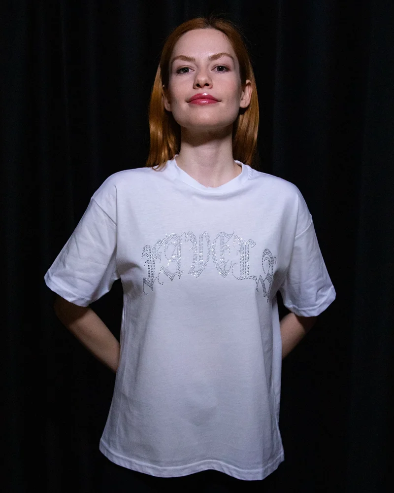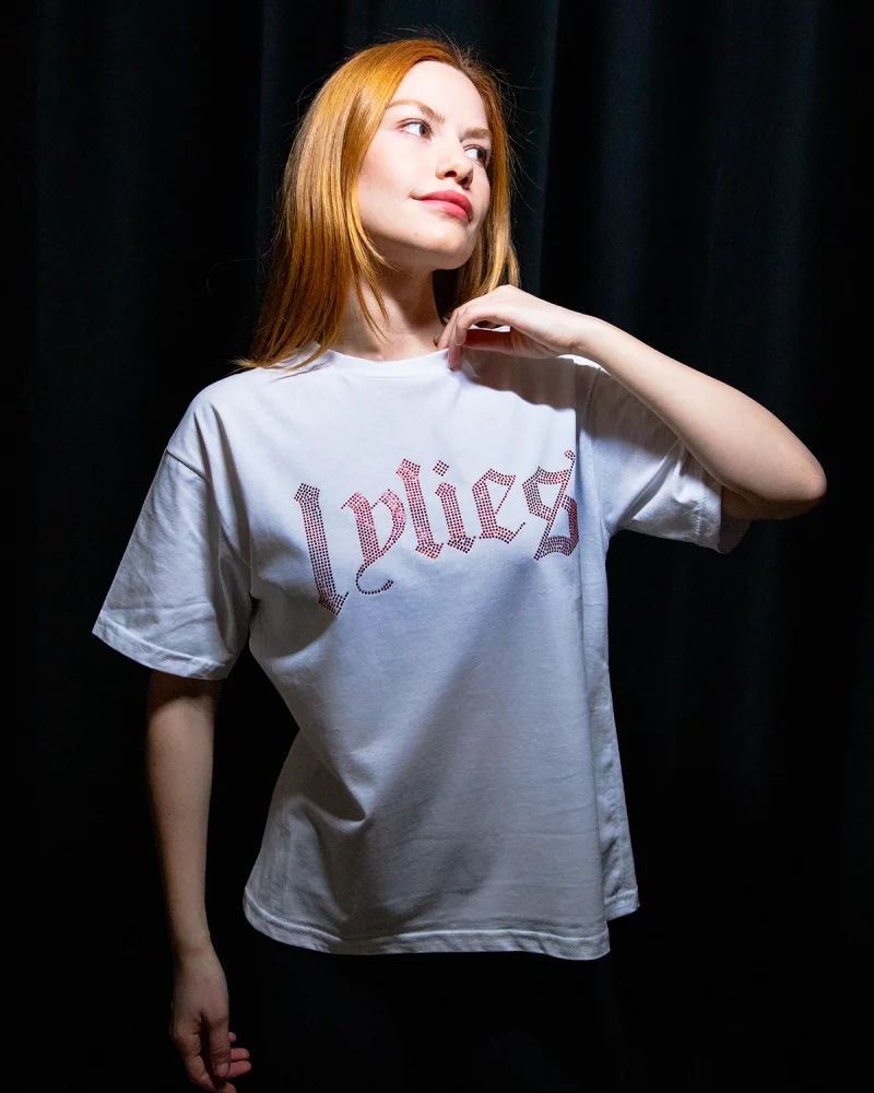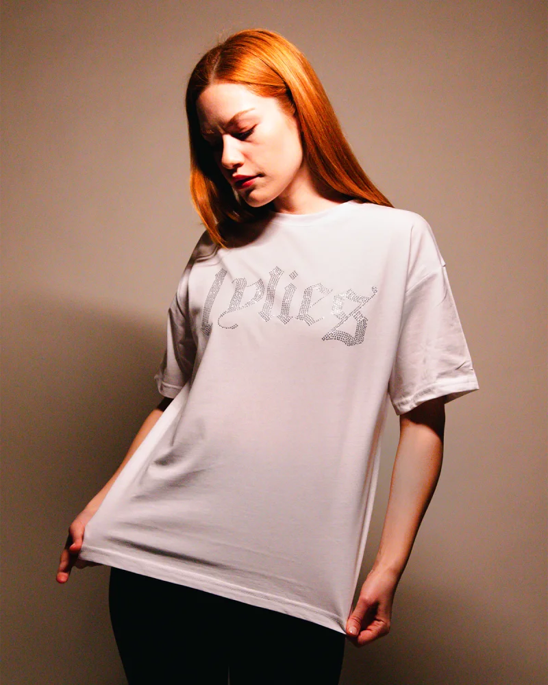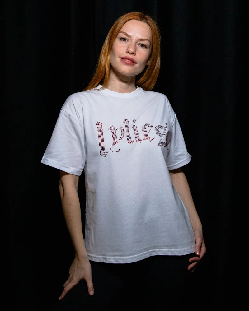 Lylies Taş Baskılı Relaxed Fit Beyaz Kadın Tshirt