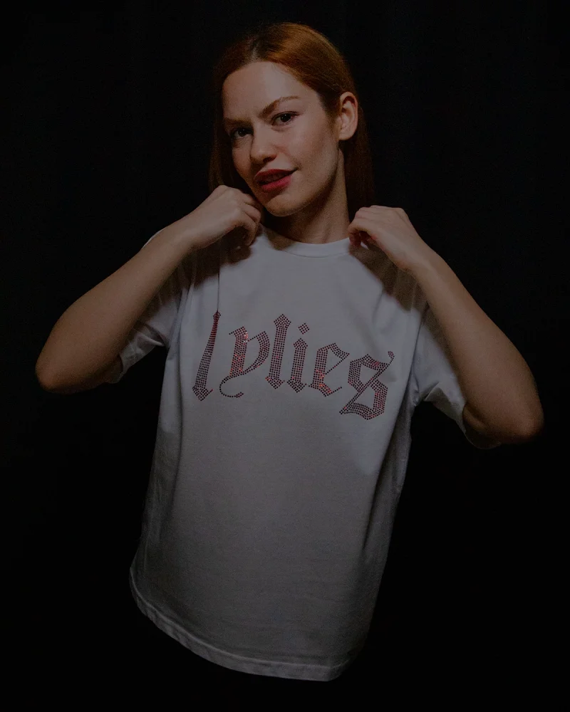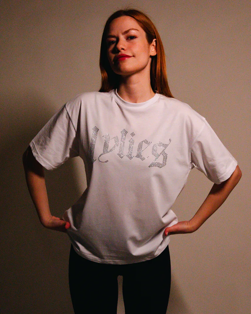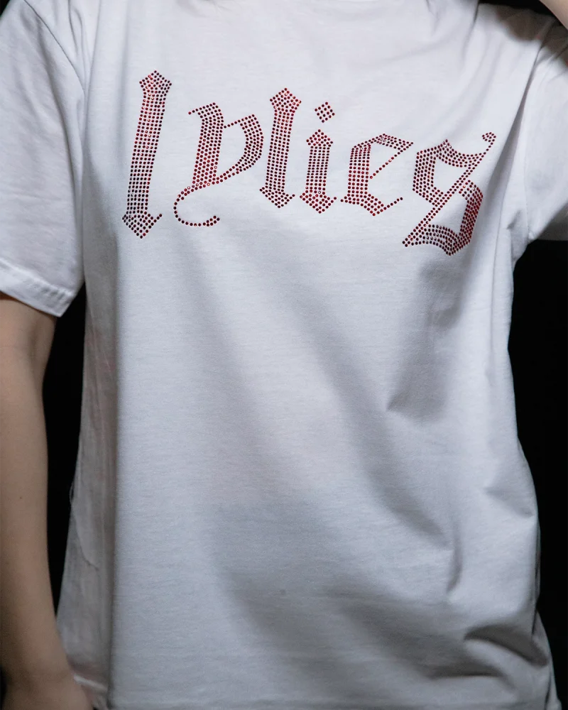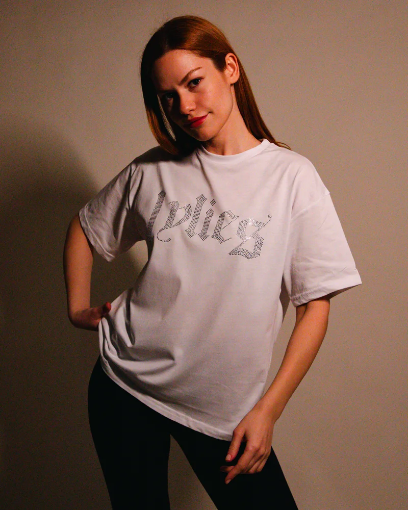 Lylies Taş Baskılı Relaxed Fit Beyaz Kadın Tshirt