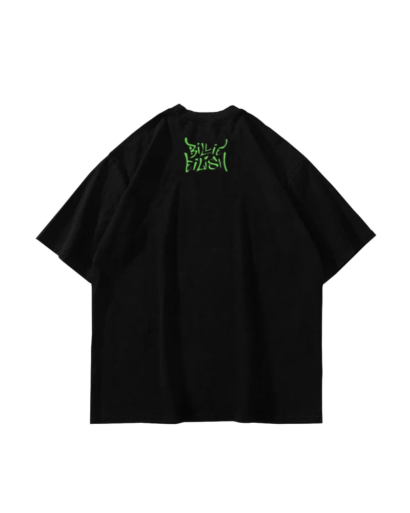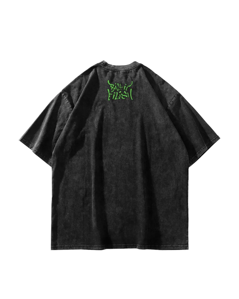 Over Kill Baskılı Oversize Unisex Yıkamalı Siyah Tshirt
