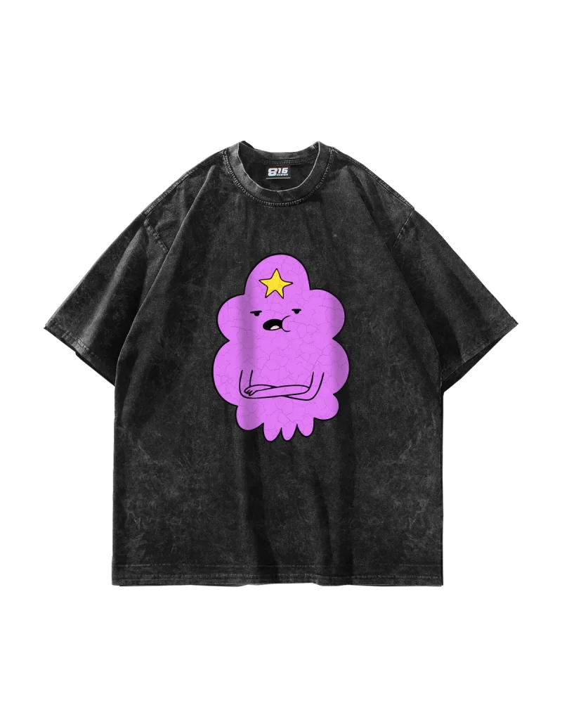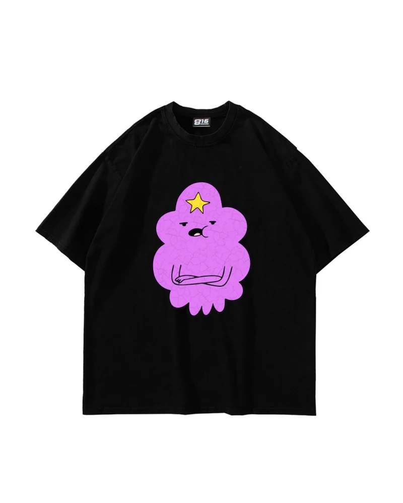 Lumpy Space Princess Baskılı Oversize Unisex Yıkamalı Siyah Tshirt