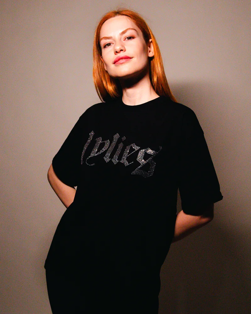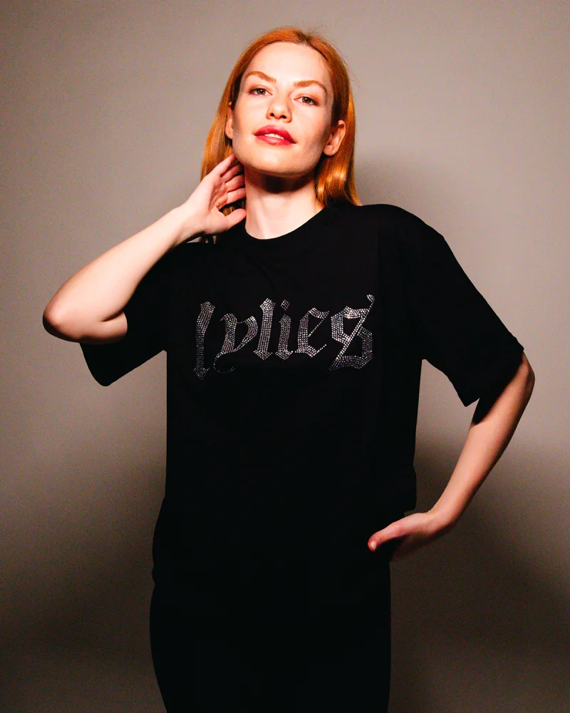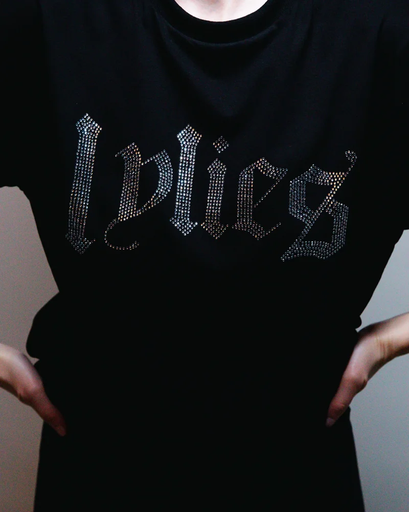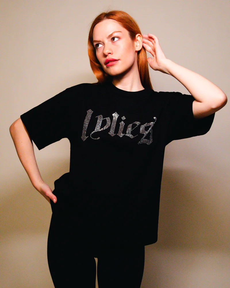 Lylies Taş Baskılı Relaxed Fit Siyah Kadın Tshirt
