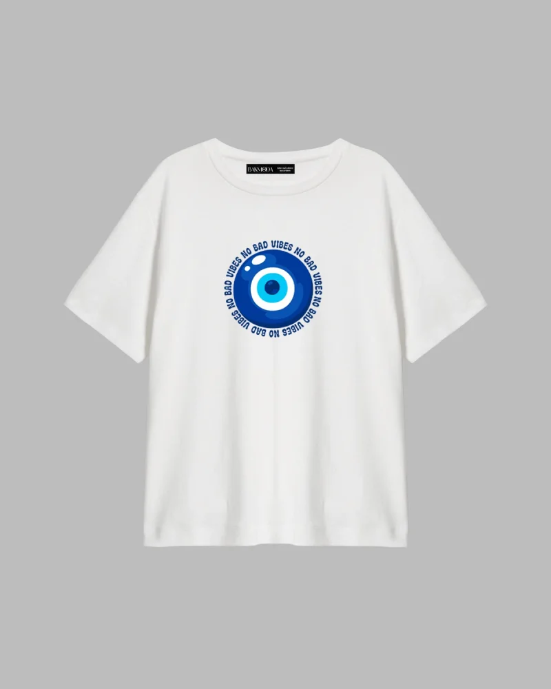 Göz Var Sende Baskılı Relaxed Fit Beyaz Kadın Tshirt