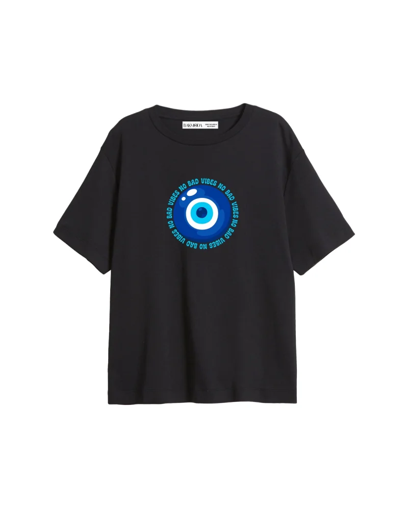 Göz Var Sende Baskılı Relaxed Fit Siyah Kadın Tshirt
