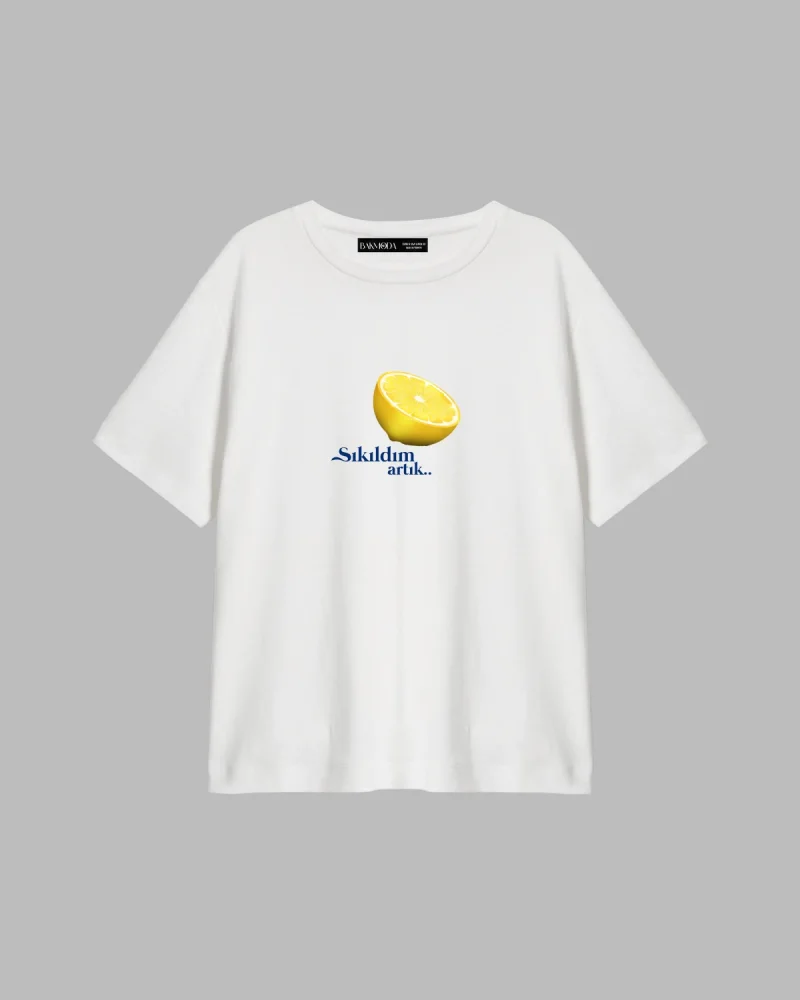 Sıkıldım Artık Baskılı Relaxed Fit Beyaz Kadın Tshirt