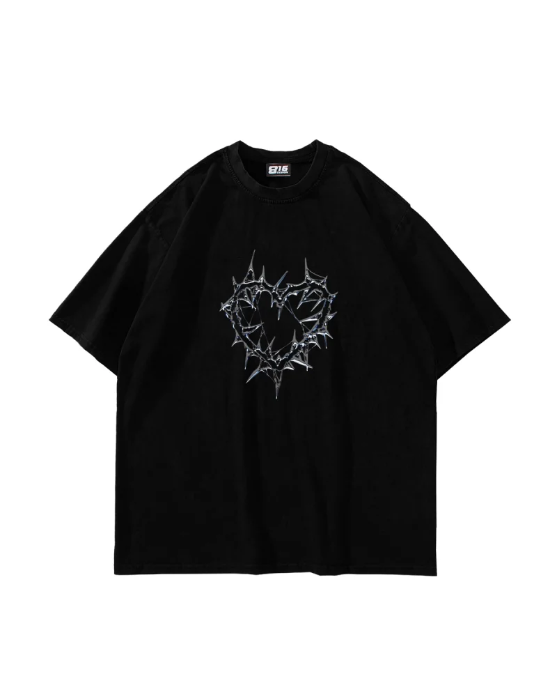 Thorny Heart Baskılı Oversize Unisex Siyah Tshirt