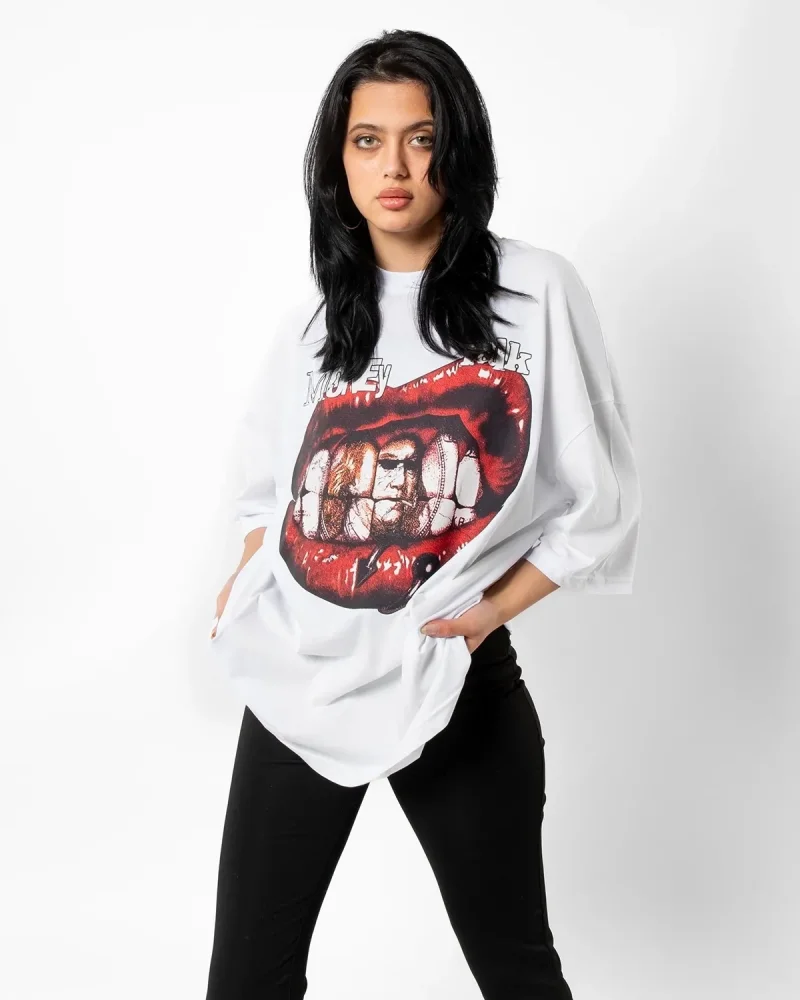 Money Talk Baskılı Beyaz Oversize Unisex Tshirt