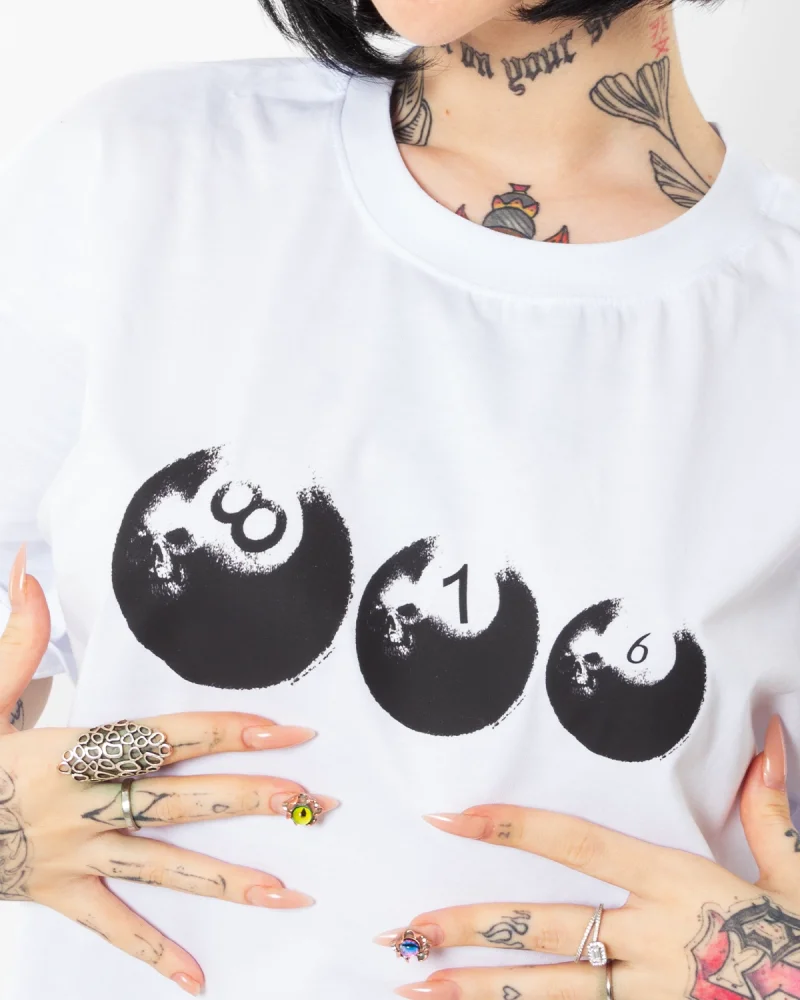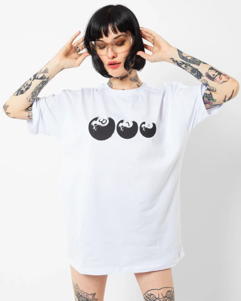 816 Billiard Ball Baskılı Beyaz Oversize Unisex Tshirt